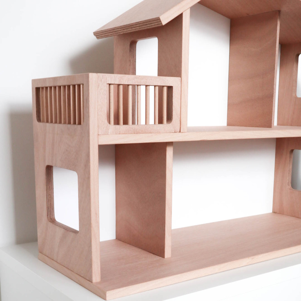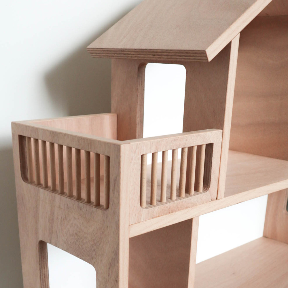 A Fafióka erkélyes babaházat 18mm-es rétegelt lemezből készítjük, a látszó élek bükkléccel vannak beszegve.
